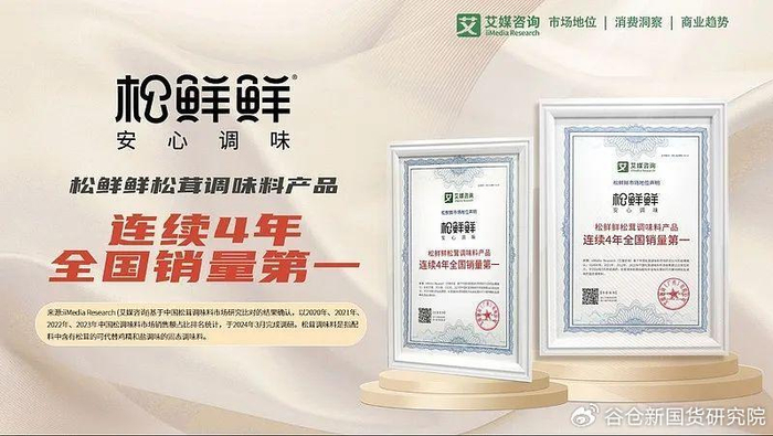 1.据艾媒咨询调研数据,松鲜鲜的松茸调味料产品在该细分赛道已经连续4年(2020年—2023年)全国销量第一。