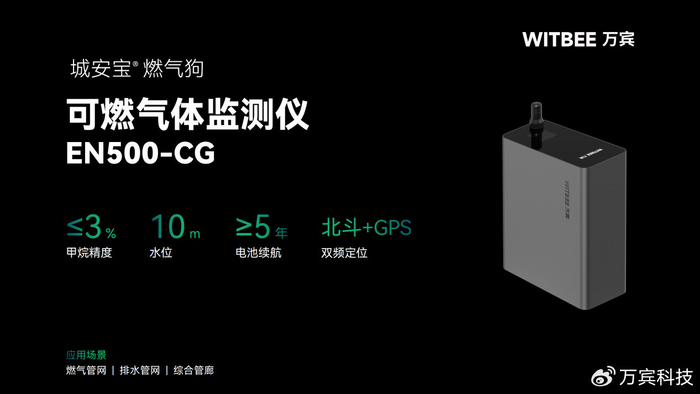 WITBEE®万宾科技®可燃气体监测仪 EN500-CG可以提供全天候、不间断的实时监测服务。它能够捕捉到地下燃气管线周围空气中,哪怕极其微弱的甲烷气体,实现对地下燃气管线的全方位、几乎无死角的覆盖监测。