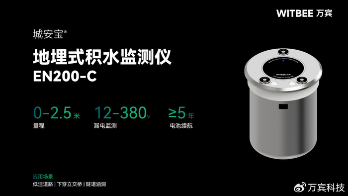 积水问题是隧道安全运营的一大隐患,可能引发路面打滑、电气短路、结构浸蚀等问题。地埋式积水监测仪的安装点应优先设在隧道的最低标高处。同时,在隧道排水沟汇集口、易渗水段、沉降突变段也应布设,以实现雨水、渗水或意外漏水的快速感知,确保一旦出现积水超限情况便可以通知运维单位。
