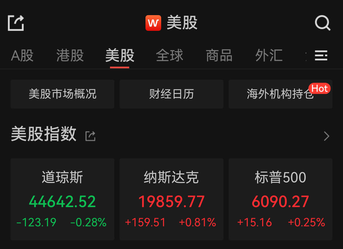 Wind截图截至收盘,道指跌0.28%报44642.52点,标普500指数涨0.25%报6090.27点,纳指涨0.81%报19859.77点。其中,标普500指数与纳指再创收盘新高。本周,道指跌0.6%,标普500指数涨0.96%,纳指涨3.34%。