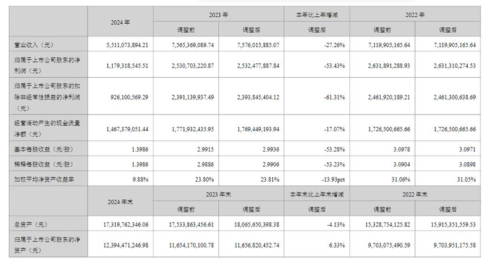 年报截图据公司22日晚披露的2024年年度报告,期内公司实现营业收入55.11亿元,较上年同期下降27.26%;实现归属于上市公司股东的净利润11.79亿元,较上年同期下降53.43%。其中,集成电路业务实现营业收入52.15亿元,占公司营业收入的94.63%,电子元器件业务实现营业收入2.24亿元,占公司营业收入的4.07%。