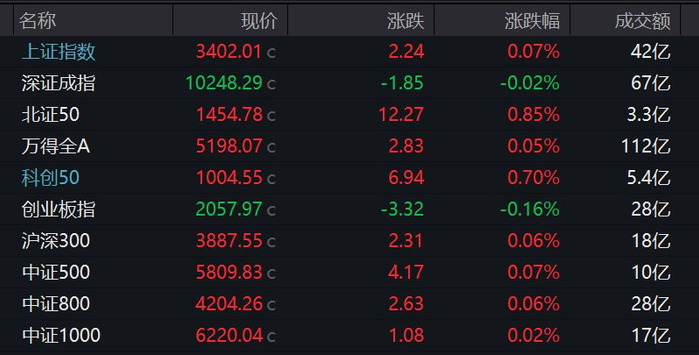 中新经纬6月10日电 10日早间,A股三大指数开盘涨跌不一,上证指数涨0.07%,报3402.01点;深证成指跌0.02%,报10248.29点;创业板指跌0.16%,报2057.97点。