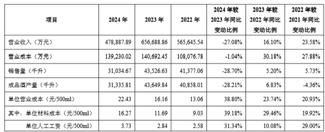 综上,报告期公司酒类业务在收入和产量下滑的情况下,受材料成本价格、生产量等因素的影响,酒类业务成本变动较小具有合理性。