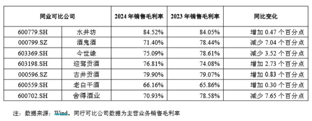 舍得酒业还提到,同行业可比公司的销售毛利率受白酒整体形势影响,均出现不同幅度的下降或增长幅度较小。
