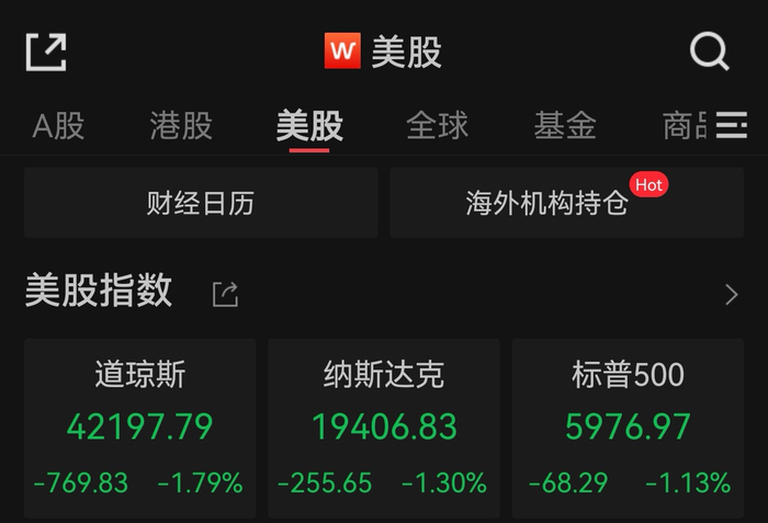 来源:Wind截图截至收盘,道指跌1.79%报42197.79点,标普500指数跌1.13%报5976.97点,纳指跌1.3%报19406.83点。本周,道指跌1.32%,标普500指数跌0.39%,纳指跌0.63%。