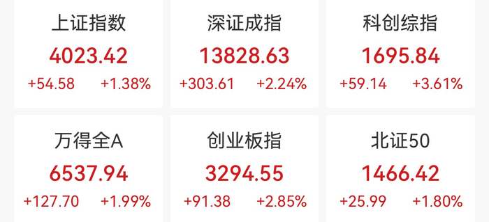 中新经纬1月5日电 2026年首个交易日,沪指斩获“12连阳”,强势站上4000点。截至收盘,上证指数涨1.38%,报4023.42点;深证成指涨2.24%,报13828.63点;创业板指涨2.85%,报3294.55点。