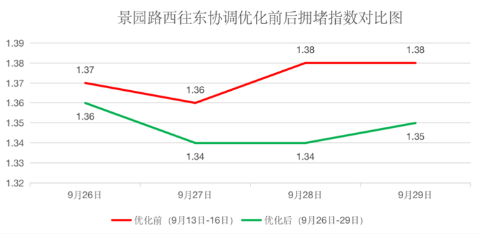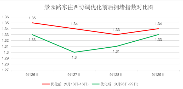 景园路晚高峰西向东优化前后