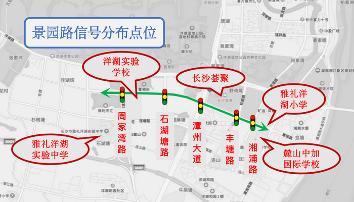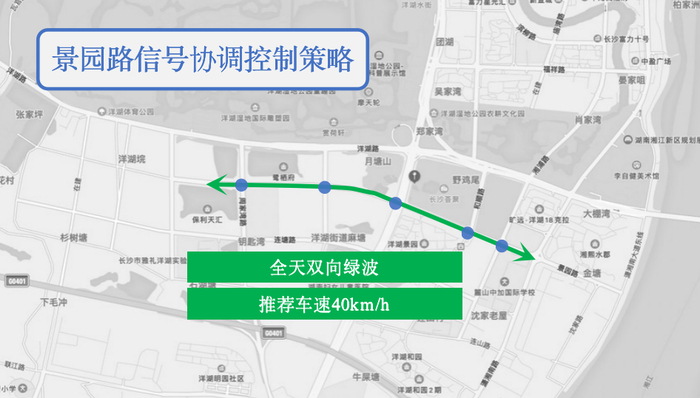 对洋湖路与景园路实施了“绿波”协调控制方案