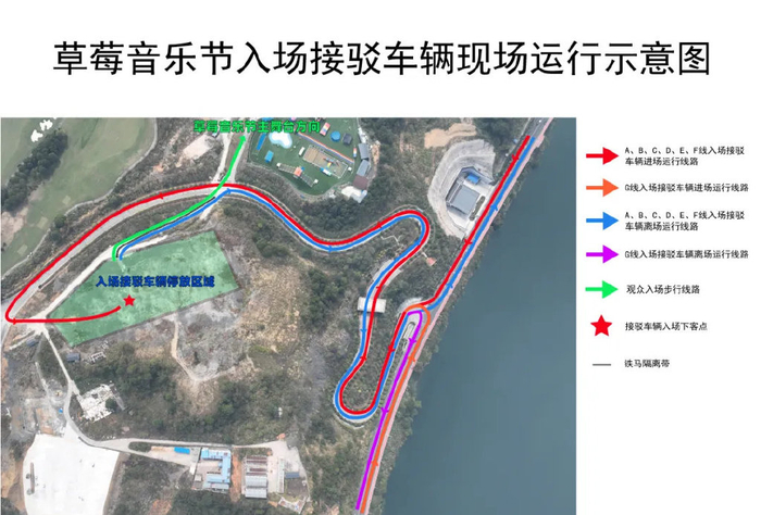 场地周边无停车场,同时避免交通拥堵,请大家勿直接自驾或打车到音乐节现场。可打车到近场地的G接驳点(融山东路山水印象外交通管制点)再乘坐接驳车抵达音乐节现场。如自驾,可自驾前往远程接驳点的A/B/C/D/E/F线发车点,附近有大型社会停车场可供停车,停车后再乘坐接驳车前往音乐节现场。同时,永定区各机关事业单位内部停车场将在10月19日-20日全天开放,供音乐节自驾乐迷停车使用,请大家根据音乐节指示牌有序停放车辆,点击查看🔍相关通知。去程接驳线路共2个运行时间段,发车间隔时间约10-15分钟,人满发车。