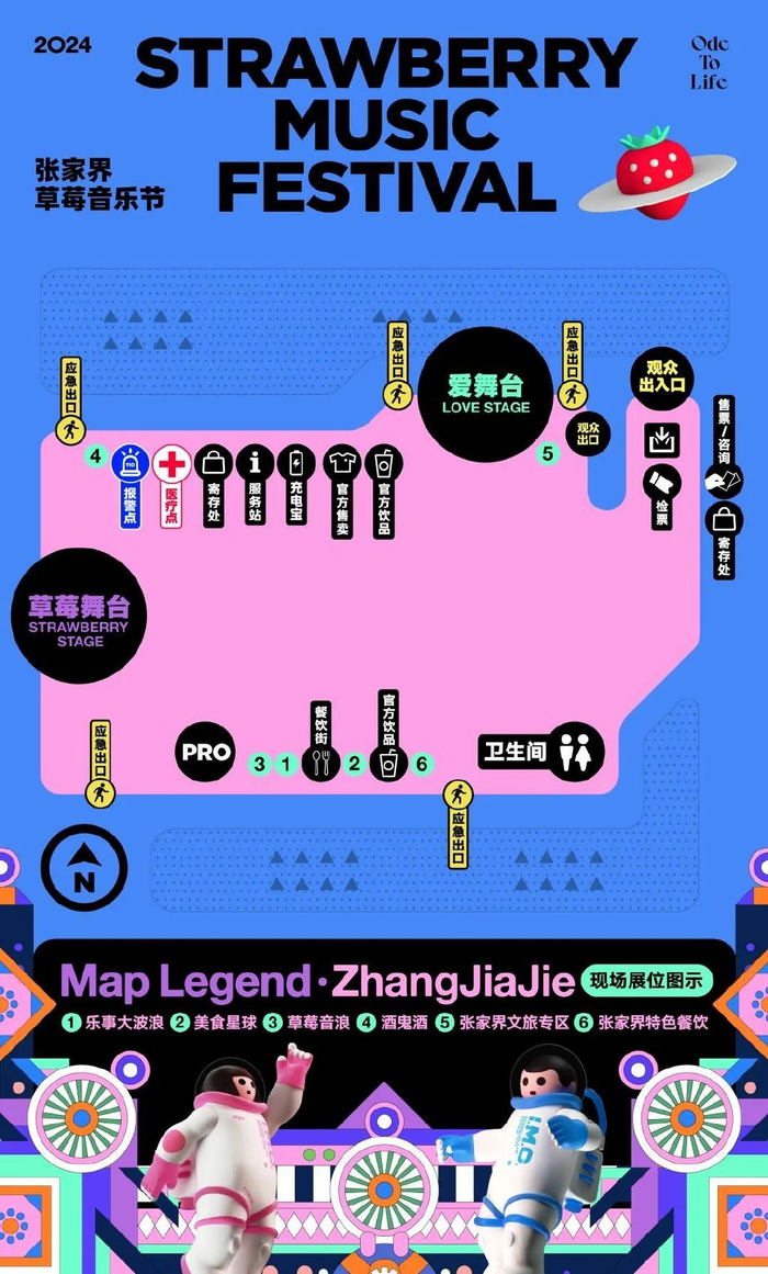 —— 现场地图 ——现场出入口、寄存处、舞台、官方售卖、餐饮区、洗手间、医疗点、报警点、充电宝租借处、服务站等重点内容的位置,一目了然。建议保存到手机,以便随时查看。