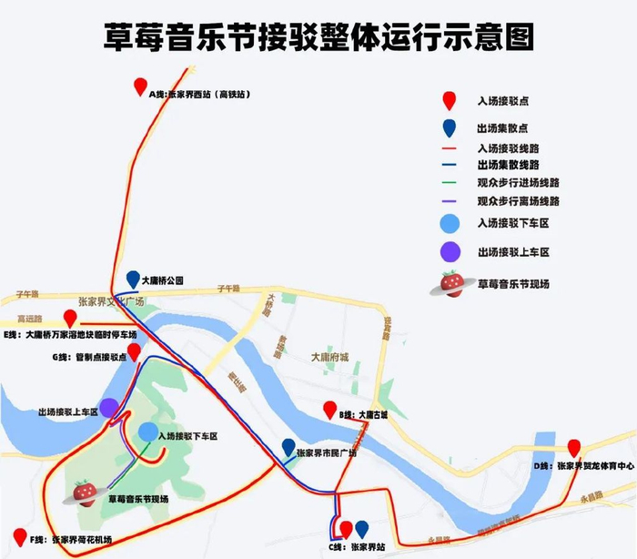 —交通信息—为了便于大家顺利往返现场,2024张家界草莓音乐节,推出了往返接驳车方案。去程7条路线,返程3条路线。