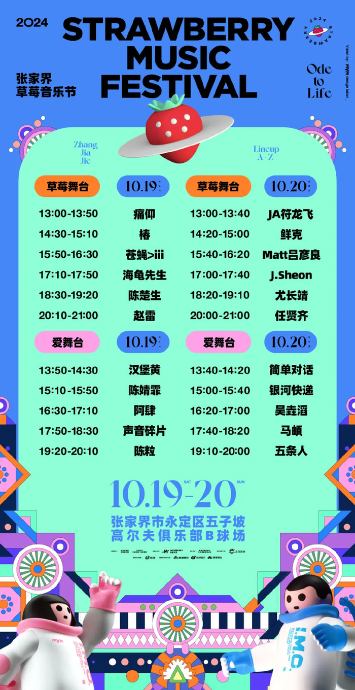 Vision by:MVM design label _—— 演出时间表 ——草莓舞台、爱舞台,演出时间不重合,请提前做好观演计划,避免错过喜欢的音乐人演出。