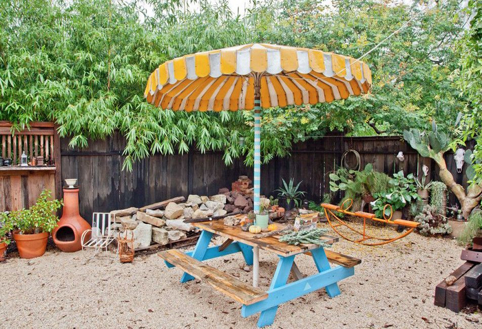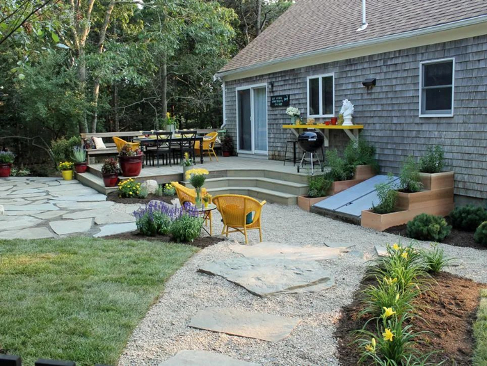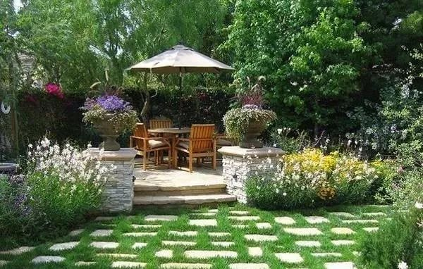 在设计休闲区的时候,应该以平地为主,最好带一点坡度,以便能充分的排水,而且与布置盆栽植物的区域保持一定的距离。