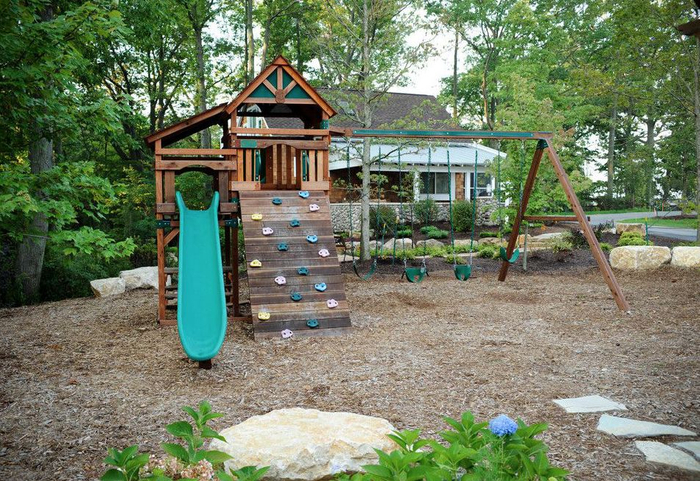 娱乐区的形式通常根据家庭人数和软装来决定,如果家里有小孩,则通常会考虑做一个儿童活动区,用来作为孩子们的一个能够亲近大自然、探索大自然的环境和一个相对较安全的娱乐场所。这个区域可以有小型游乐设施、小树屋等小景观元素的存在。