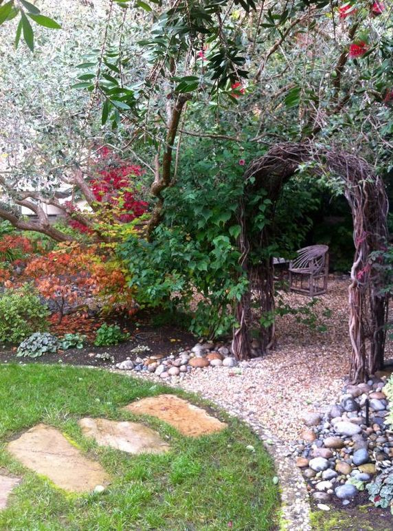 入户区可以是一道门,可以是一些植物围成的道路。当然,在实际设计中,要根据院子的风格、位置、大小和方位来设计入户区。基本上入户区在每个花园里都是存在的。