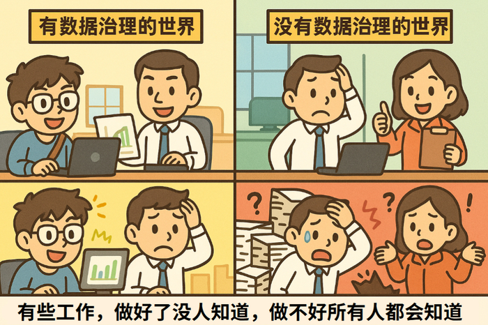 文内以漫画的形式,生动描绘了高薪数据治理专家价值被忽视的职场困境,看完直呼真实!