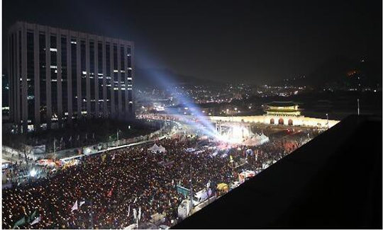 1月7日晚,在首尔光化门广场,韩国民众举行新年来的首次反朴集会,敦促朴槿惠早日下台。
