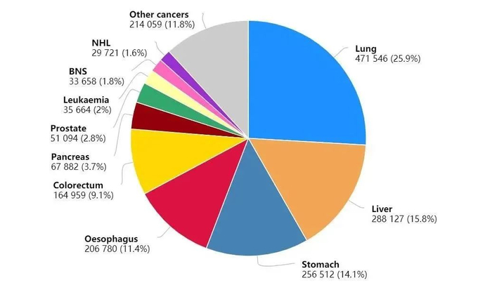 2020年中国癌症死亡人数300万,肺癌死亡人数遥遥领先,高达71万,占癌症死亡总数的23.8%。
