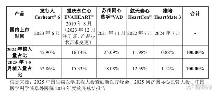 但意外的是,核心医疗后来居上,2024年时Corheart 6的全国市占率超45%,位居行业第一。今年10月,Corheart 6完成第1000例植入,成为继雅培HeartMate 3之后,全球第二款、中国首款突破千例大关的全磁悬浮人工心脏。
