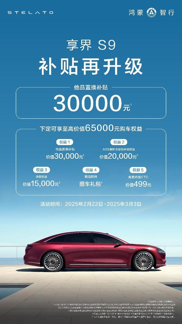 可能有网友想说,享界S9这些产品力都是高配、顶配才有,其实不然,它的大部分技术、高阶配置都是标配,并且当前针对用户需求,还给出了足足65000元购车权益,相当于把很多选配也变成了标配。