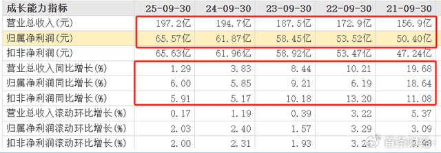 据东财choice数据2022Q3-2025Q3,该行营收172.9亿元、187.5亿元、194.7亿元、197.21亿元,对应增速10.21%、8.44%、3.83%、1.29%,呈持续放缓态势。归母净利53.52亿元、58.45亿元、61.87亿元、65.57亿元,对应增速6.19%、9.21%、5.85%、6.00%,整体增幅也均未突破10%。