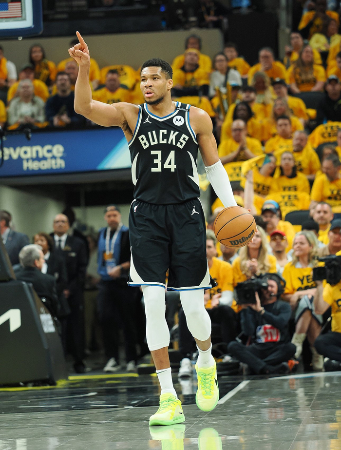 据统计,字母哥已经连续7年入选最佳一阵,本赛季常规赛他场均30.4分11.9篮板6.5助攻1.2盖帽。