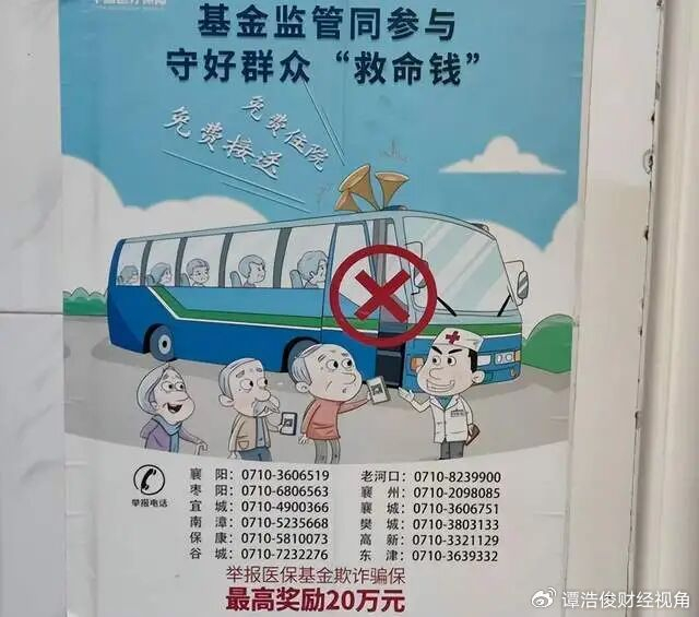 从报道的情况来看,对在襄阳出现这么多精神病院,公立医疗机构也非常不满,在公立医疗机构内也张贴着打击欺诈骗保宣传海报,提醒公众警惕“免费接送、免费住院” 这类欺诈骗保行为。看得出公立精神病医疗机构也很无奈,应当向上级报告过。