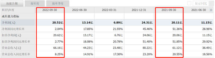 今年前三季的情况看,片仔癀的营收、业绩增速出现断崖式下跌,2021年三季报公司营收增速20.55%、净利润增速更是高达51.36%,而今年三季度增速直接降至个位数,净利润增速更是暴跌。