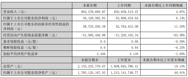 千味央厨今年上半年的净利润为5932.81万元,同比增长6.14%;扣非后净利润5872.01万元,同比增长11.29%。