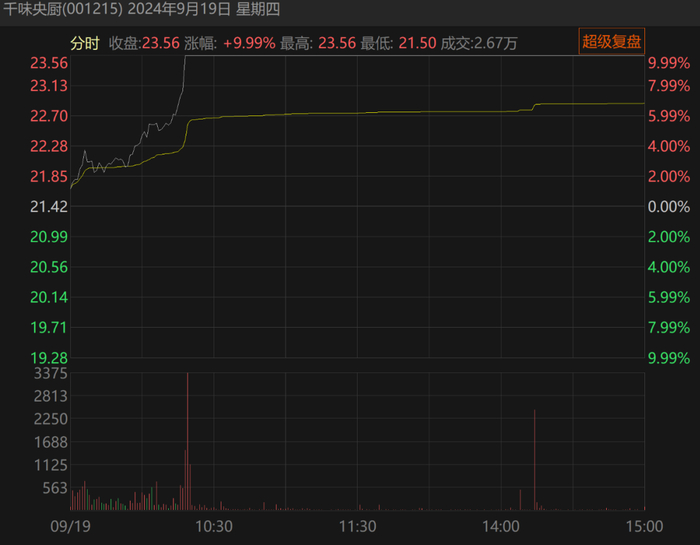 而国联水产和千味央厨,股价也比当时下跌明显。尤其是千味央厨,尽管在9月19日上午就早早涨停,但前面的跌幅太多,目前已经缩水至不到23亿市值。