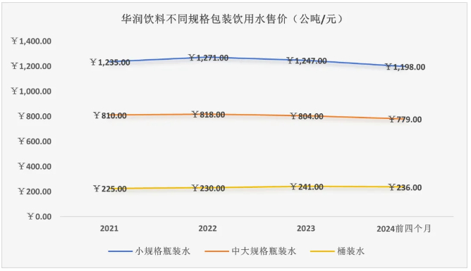 2022年、2023年,怡宝“包装饮用水”业务同比增速分别为10.05%和4.53%,2024年前四个月同比增速进一步下滑至2.68%;