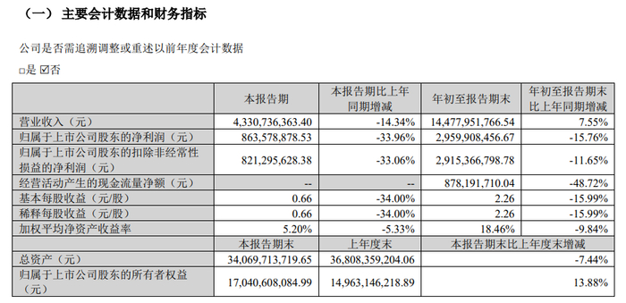 目前,光伏产业领域较大的上市公司中只有晶盛机电在昨日晚间披露了三季报,结果并不乐观。晶盛机电三季报显示,三季度营收43.3亿、同比下滑14.34%,归母净利润8.63亿、同比下滑33.96%,前三季度营收144.78亿、同比增长7.55%,归母净利润29.60亿、同比下滑15.76%,前三季度经营现金流大幅下滑48.72%。