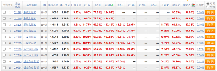 打开场外公募基金排行榜一看,近三个月收益最高的全是跟踪北证指数的产品,最大收益已经翻倍。