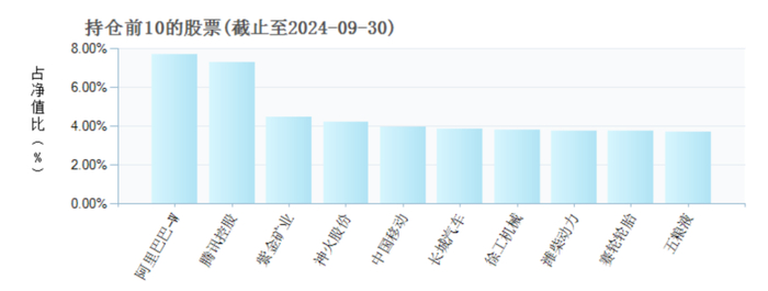 (数据来源:天天基金网、锐眼哥整理)今年三季度,萧楠似乎又把持仓转向了此前已经涨了很多的阿里巴巴、腾讯控股、紫金矿业、中国移动、徐工机械、赛轮轮胎、潍柴动力等具有一定成长性的股票上。