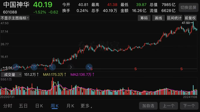 (数据来源:天天基金网、锐眼哥整理)萧楠对另一只爱股中国神华的操作更有意思。2021年一季度至2024年二季度,中国神华涨超3倍。在2021年一季度中国神华股价相对低位的时候,萧楠持股超1800万股,可谓重仓了一只潜在大牛股,结果到2022年四季度他就已经把中国神华的仓位降至150万股以下,这是害怕赚钱还是咋地?