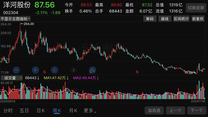 但是,要说惨,恐怕坚守洋河股份的股民更惨,洋河股份的股价仅去年初至今年9月底就下跌超60%,自2021年初高位以来更是暴跌超70%。