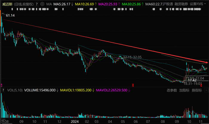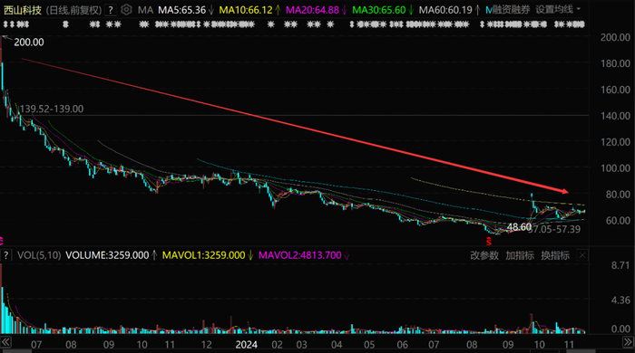上市还不到一年半,西山科技从200元一度跌到50元以下,跌幅高达75%;威迈斯从61元一度跌到18元以下,跌幅高达70%以上,这让上市之初买入并持有的投资者损失巨大。