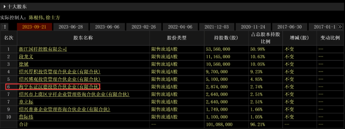 东方证券下属上海东方证券资本投资有限公司旗下的海宁东证汉德投资合伙企业,是浙江国祥的第六大股东。