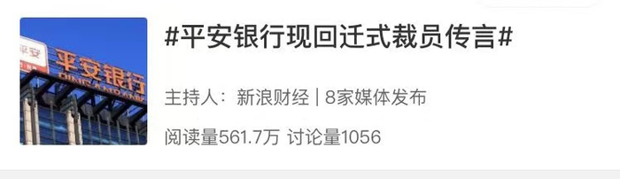 今年7月初的时候,#平安银行现回迁式裁员传言#的话题还一度登上热搜。