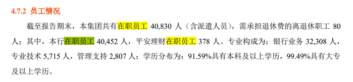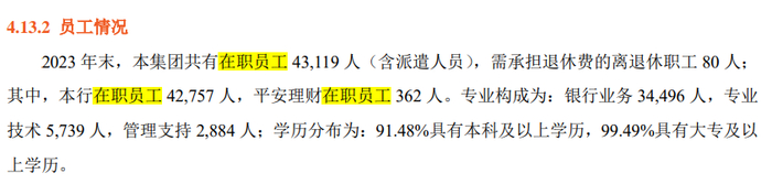 平安银行在今年的半年报中披露,报告期末集团在职员工总数40830人(含派遣人员)。然而,在2023年报中披露的这个数字是43119人,意味着上半年集团整体减员2289人,较上年同期更是减员3276人。