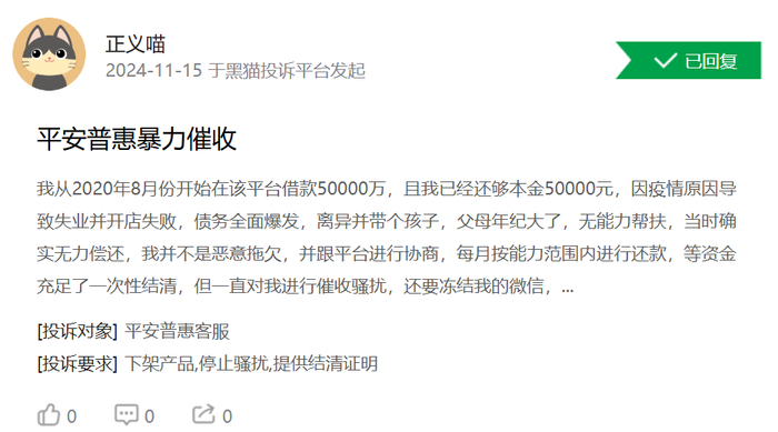 (资料来源:黑猫投诉[下载黑猫投诉客户端])当然,关于平安银行暴力催收这一点,更多的平安银行信用卡用户更有体会。