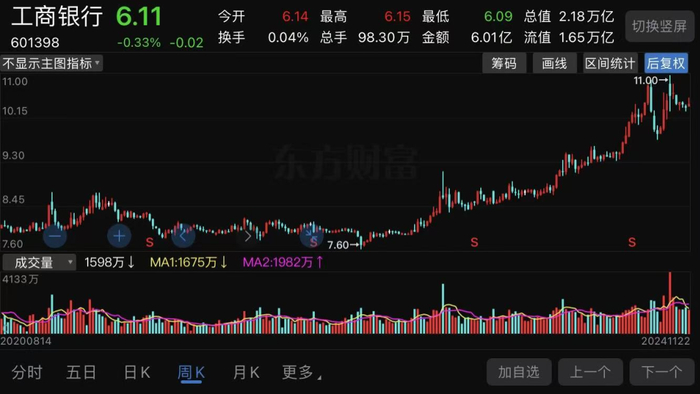 过去三年工商银行的股价几乎翻倍。