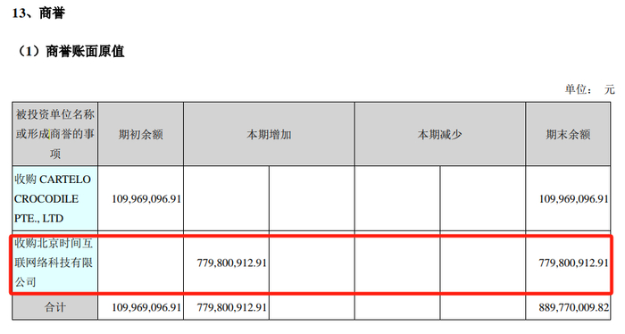 2016年8月15日,刚刚通过借壳A股的新民科技实现上市还不到1年的南极电商公告,以支付现金及发行股份的方式收购时间互联,当时时间互联的账面净资产仅为728.32万元,南极电商却以超130倍的溢价支付9.56亿的对价进行收购,在2017年完成这笔溢价收购交易,但也直接为南极电商增加近8亿的商誉。