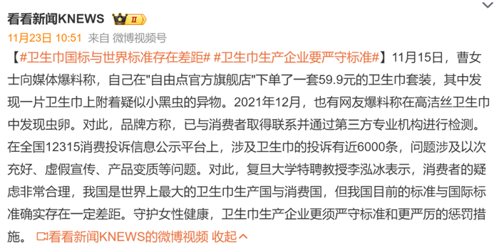 除了长度缩水问题,更严重的是,有的卫生巾甚至被发现有虫卵、异物等,让消费者深感不安。