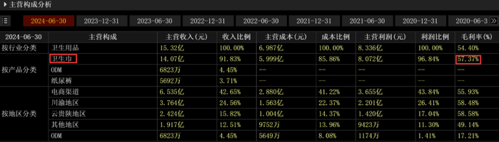 今年上半年,百亚股份卫生巾毛利率超过57%。