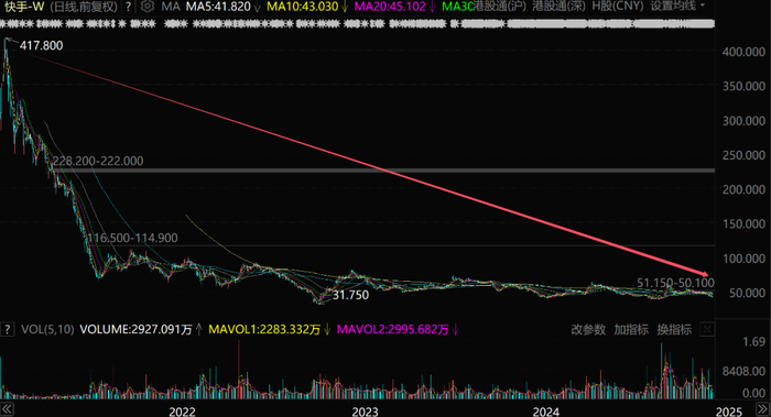 2015年1月2日,快手遭遇“2025年开门黑”,又下跌了1.93%。