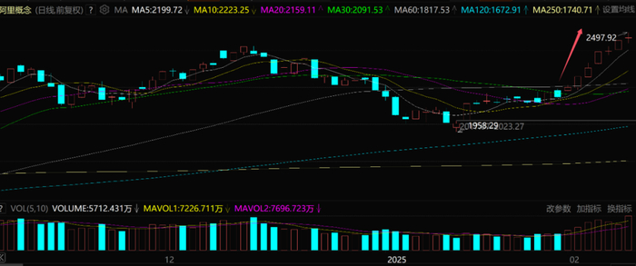 阿里概念指数也是连续上涨7天,创出几年新高。