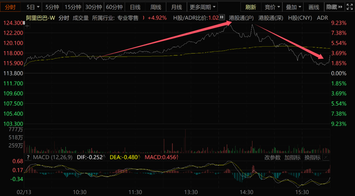 这直接让港股的阿里巴巴在2月12日暴涨8.48%。
