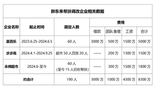 从胖东来发布的数据可以看到,其帮扶永辉超市的团队食宿+工资,共计花费1800万元。