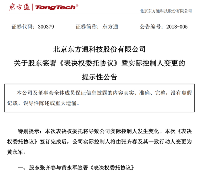 (东方通公告截图)在黄永军正式成为东方通实控人之前,张齐春似乎就很急于卖出所持的东方通股票。